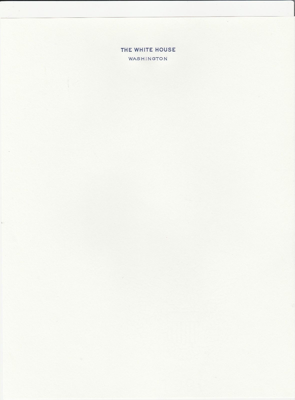 President White House Stationery circa 1999. Two different pages of Letterheads