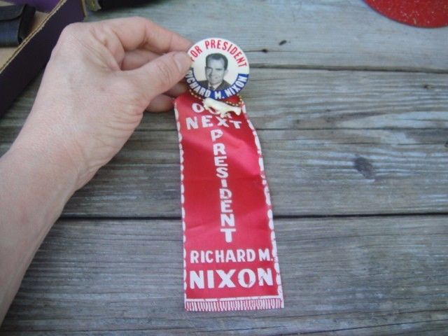 Title (ebay affiliate link): VINTAGE Richard Nixon for President Campaign PINBACK Button Ribbon & Elephant