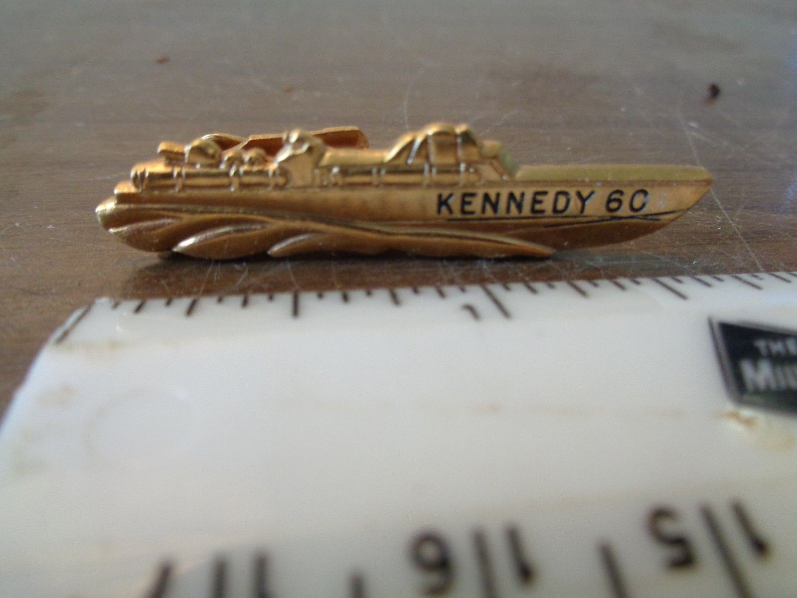 Title (ebay affiliate link): VINTAGE ORIGINAL 1960S JOHN F KENNEDY FIGURAL PT 109 BOAT JOLLE TIE BAR CLIP