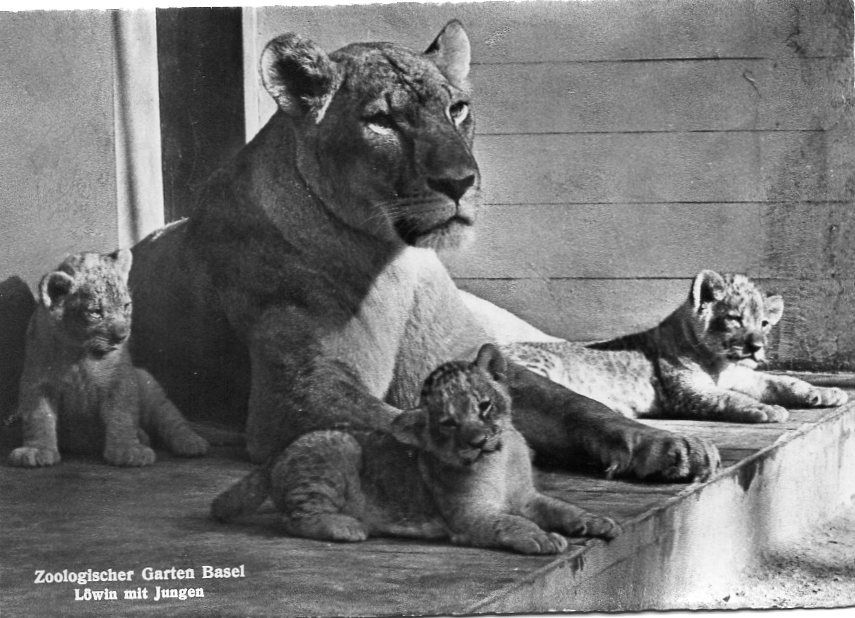 Title (ebay affiliate link): VINTAGE postcard of LIONESS & CUBS at BASEL ZOO 1968