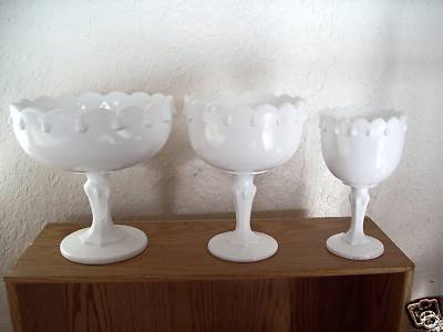 WHITE MILK GLASS-TEAR DROP-3pc Floral or Candy Dishes