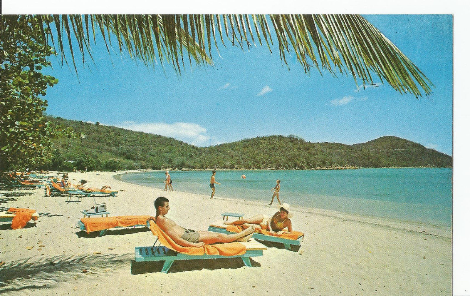 Title (ebay affiliate link): Vintage chrome postcard, beach at Island Beachcomber Hotel, St Thomas, Virgin Is