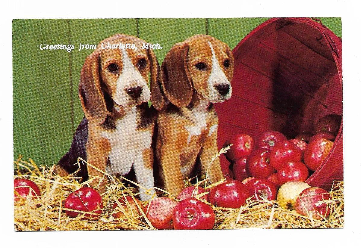 Title (ebay affiliate link): Vintage Animal Dogs Puppies Chrome Postcard Into Mischief Again Beagles Michigan