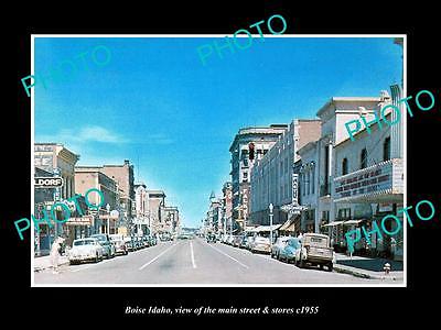 OLD LARGE HISTORIC PHOTO OF BOISE IDAHO, THE MAIN STREET & STORES c1955 1
