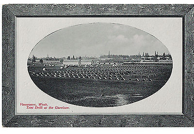 U.S.A. EMBOSSED POSTCARD VANCOUVER WASHINGTON : TENT DRILL AT THE GARRISON