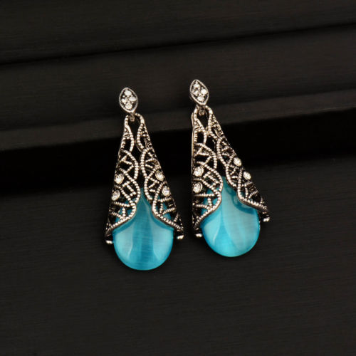 Title (ebay affiliate link): Antique Silver Plated Luxury Vintage Blue Opal Earrings Dangle For Women ES572