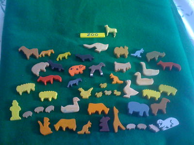 FANTASTIC 50 piece ZOO all wooden animals 1 OLLLD!! vtg