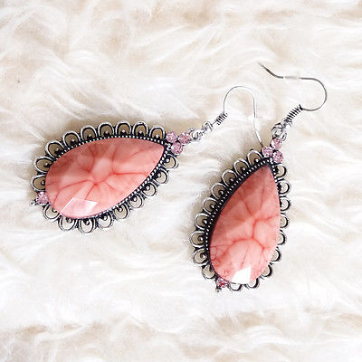 Title (ebay affiliate link): Vintage Womens Antique Metal Colors BIg Teardrop GEMs Chandelier Hook Earrings