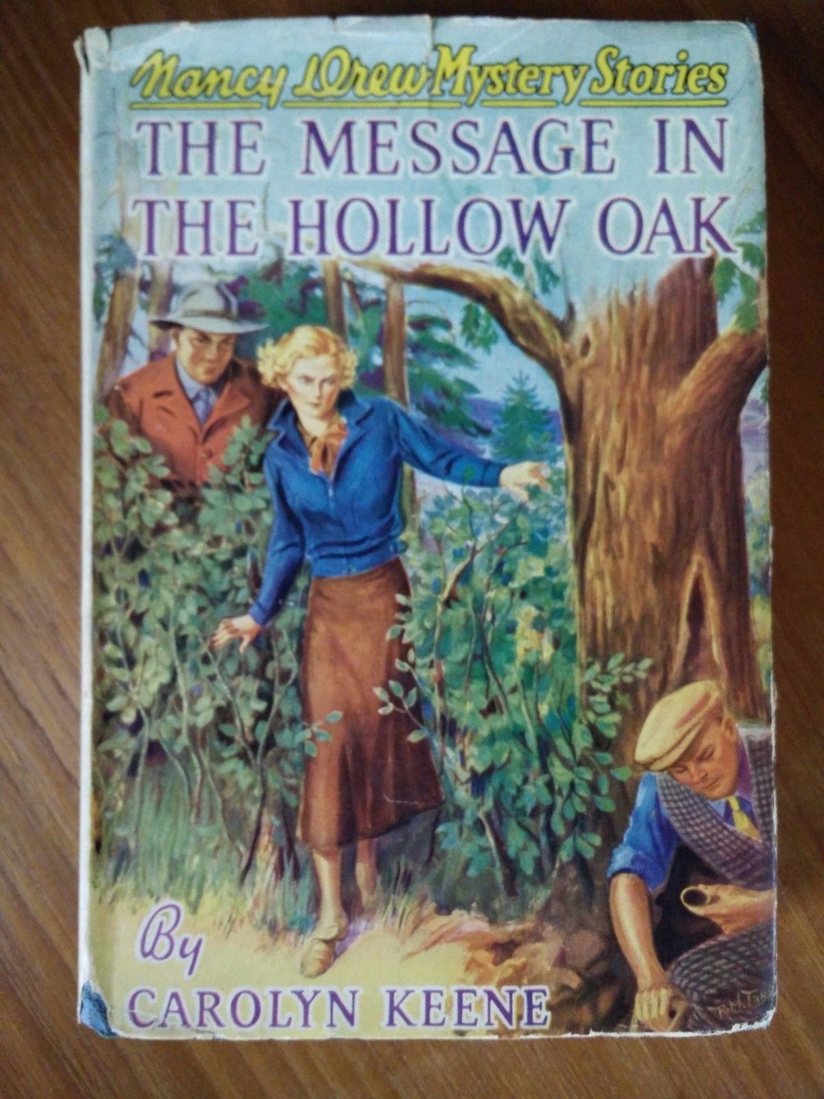 Title (ebay affiliate link): "The Message in the Hollow Oak" by Carolyn Keene (@1940, HB, DJ) Nancy Drew #12