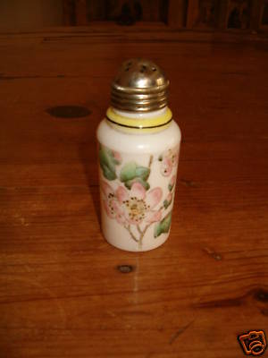 Milk Glass Painted Salt or Pepper Shaker with Metal Top