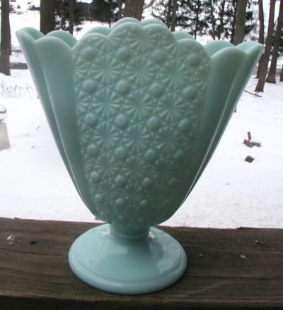 Vintage Fenton Daisy/Button Vase Green Blue Milk Glass