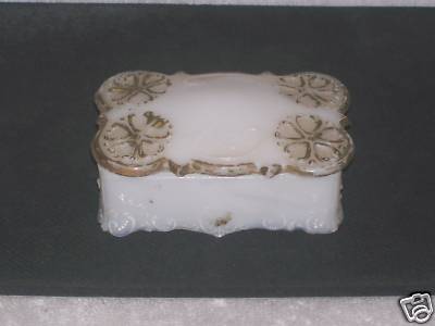 VINTAGE WHITE MILK GLASS VICTORIAN TRINKET / VANITY BOX