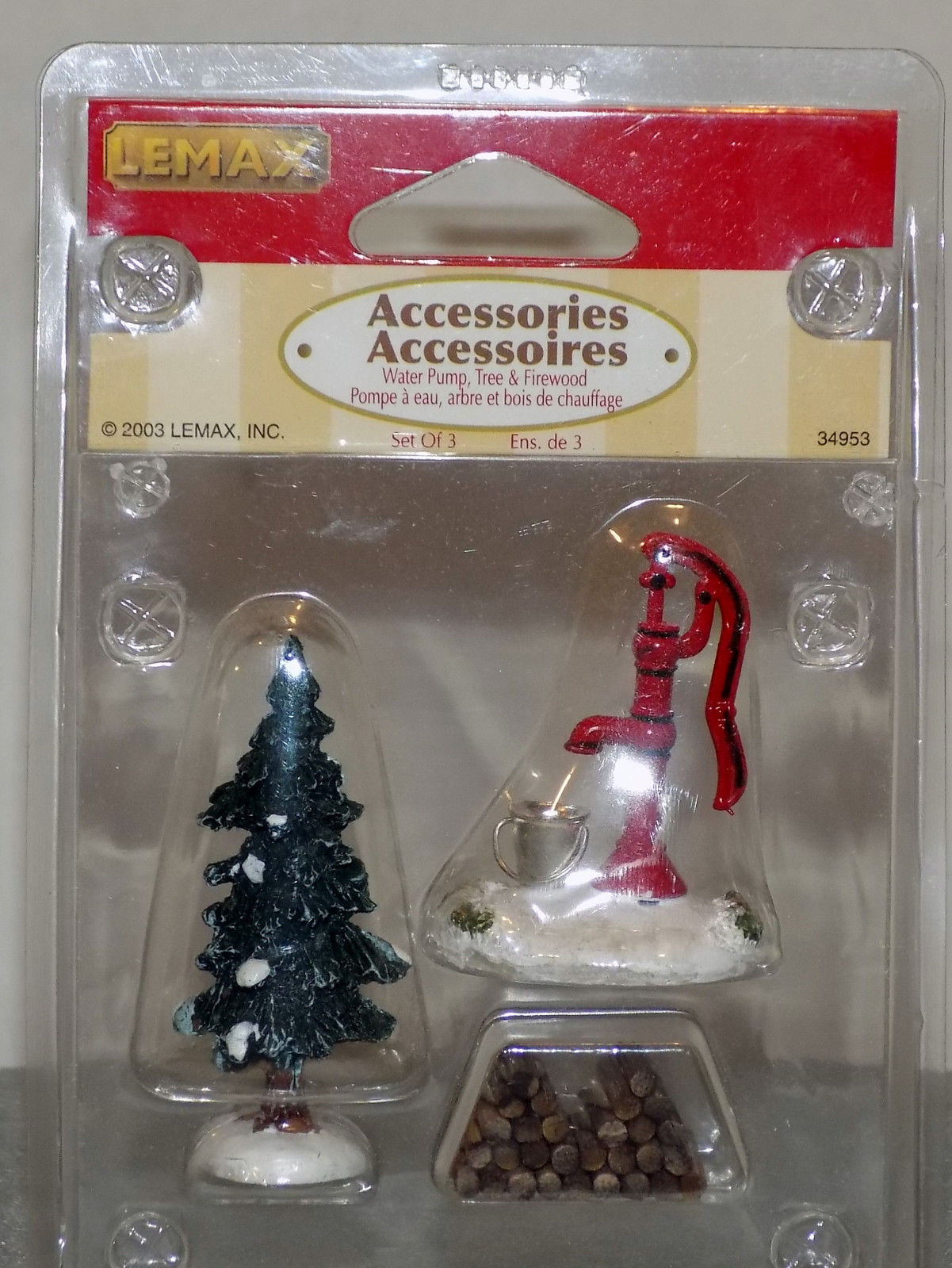 Title (ebay affiliate link): LEMAX village COLLECTIBLE Set of WATER PUMP, TREE & FIREWOOD NEW
