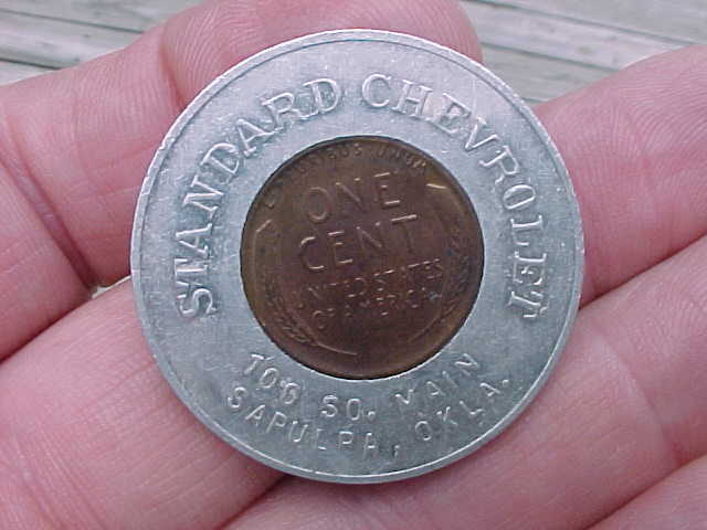 Title (ebay affiliate link): 1948 Encased Penny Standard Chevrolet 100 So. Main Sapulpa Okla