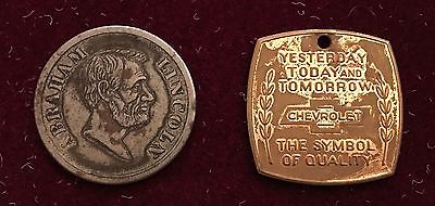 1917 Louisville Ky Lincoln Bday Auto Show Token & 50 Yr. Chevrolet Key Chain FOB