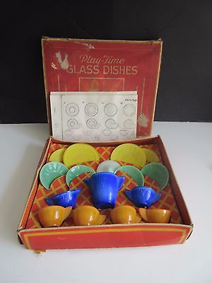 Vintage 1940''s Akro Agate Playtime Children''s 16pc Dish Set with Original Box
