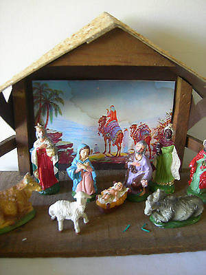 VINTAGE NATIVITY SET NEWBERRY''S STORE -MADE IN ITALY- GC - w/STABLE