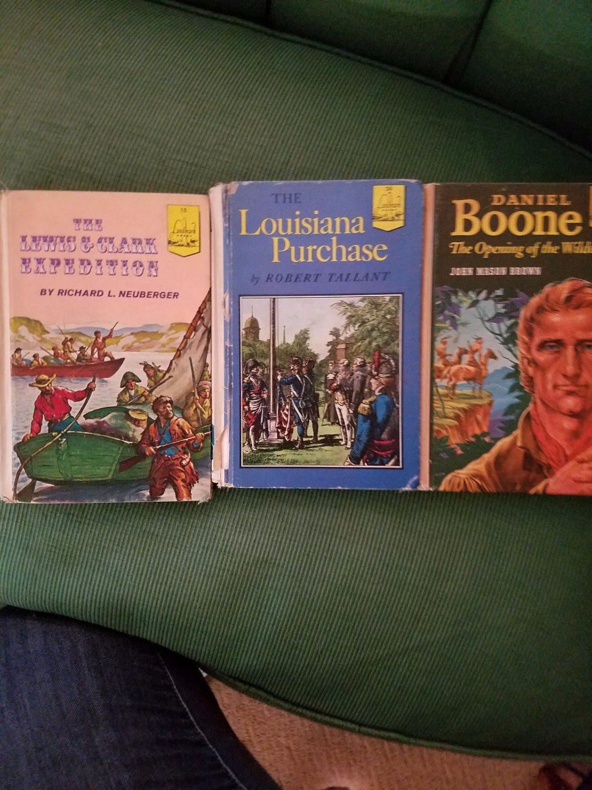 Title (ebay affiliate link): Landmark Books #15, 24, 21 Lewis & Clark, Louisiana Purchase, Daniel Boone.