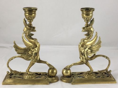 Title (ebay affiliate link): Antique Neoclassical Brass Winged Griffin Mantle Chamber Sticks Candle Holders