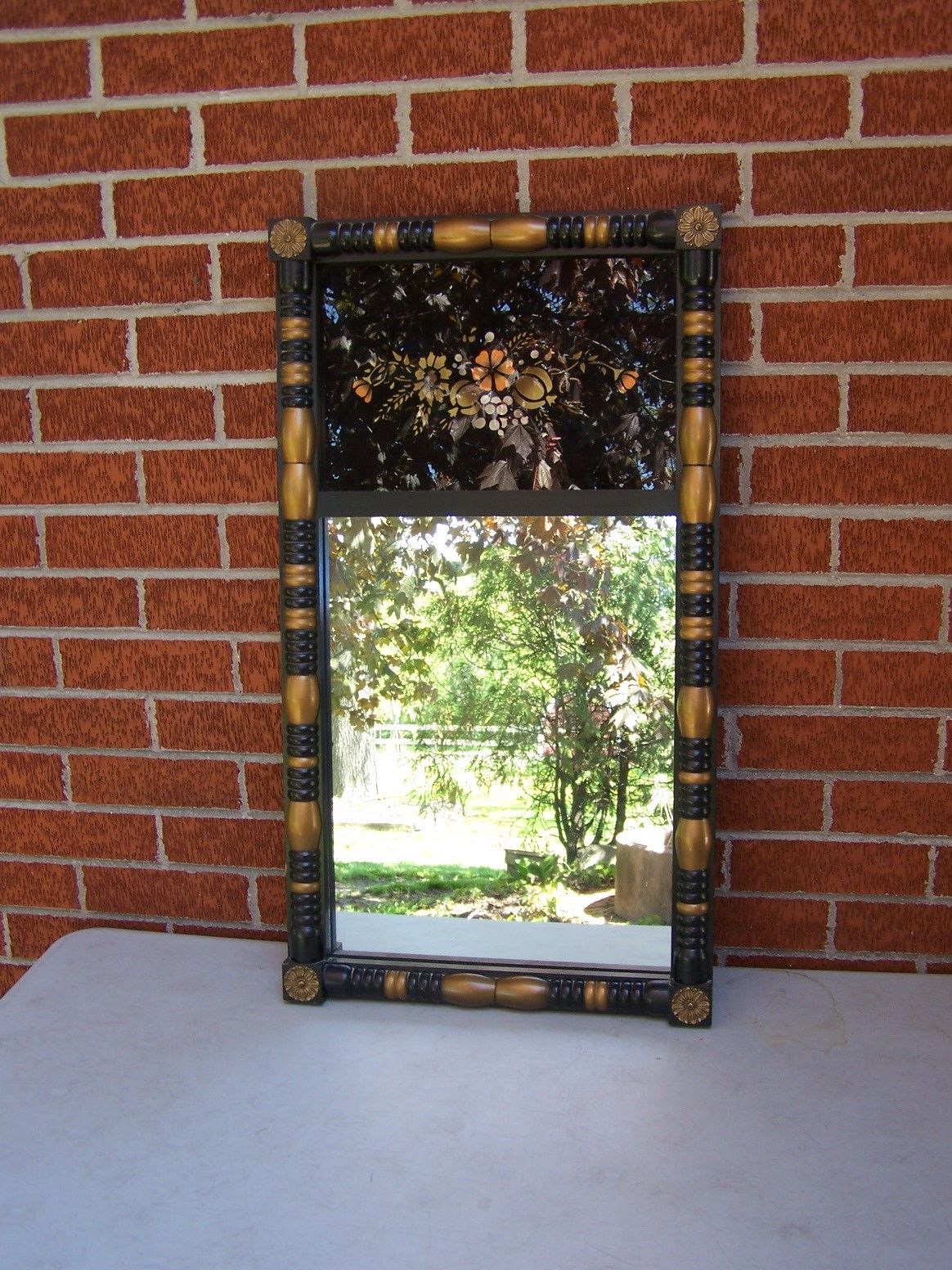 Title (ebay affiliate link): Hitchcock Wood Frame Black Gold Federal Wall Mirror 30" Reverse Floral Paint