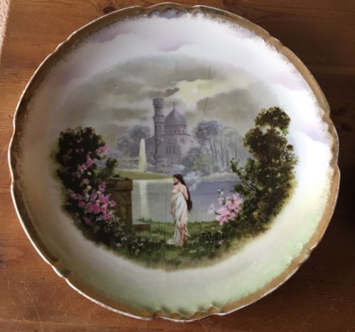 Title (ebay affiliate link): GORGEOUS ANTIQUE HAND PAINTED ROMANTIC WOMAN CASTLE PLATE GERMANY NICE!