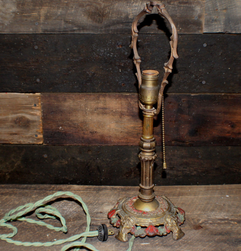 Vintage Art Nouveau Cast Iron Table Lamp with Cloth Cord