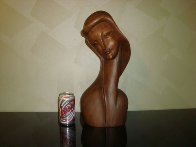 Title (ebay affiliate link): Huge 17 5/8" Vintage Hand Carved Solid Walnut Woman Lady Bust Statue Wood Figure