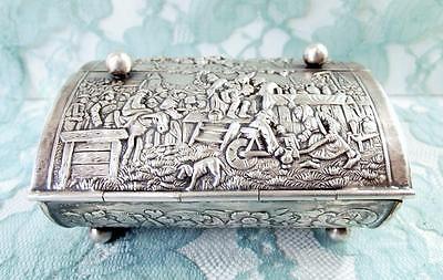Antique Unmarked Sterling? Silver Trinket Box ~ Very Ornate Scene ~ 3 3/4" Long