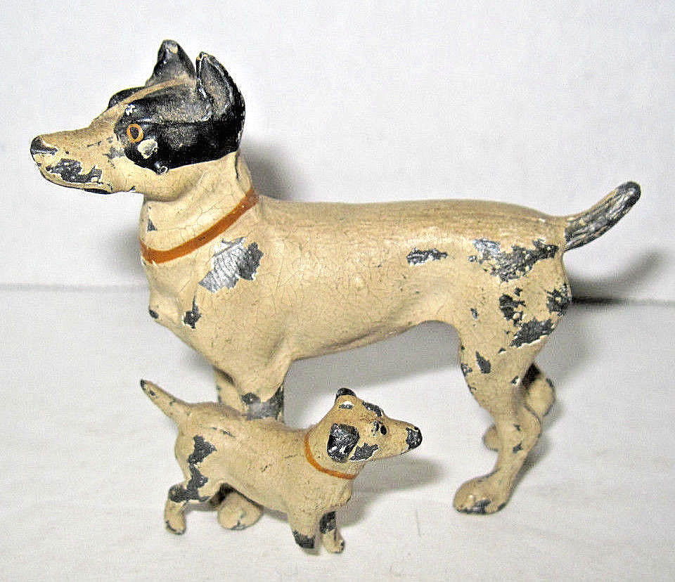 Antique Mom & Pup Metal Dog Figure 3" x 21/4"