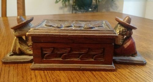 Title (ebay affiliate link): Vintage Folk Art Hand Carved Wood Hinged Box Sleeping Male & Female Mexicans
