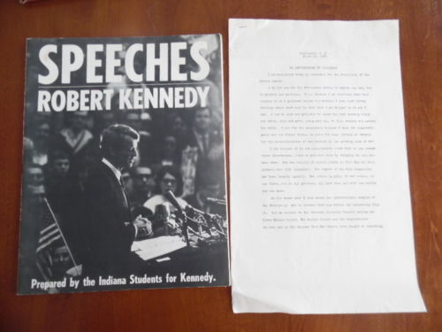 Title (ebay affiliate link): 1968 Speeches of Robert Kennedy Indiana Students For RFK Campaign Pamphlet ORIG