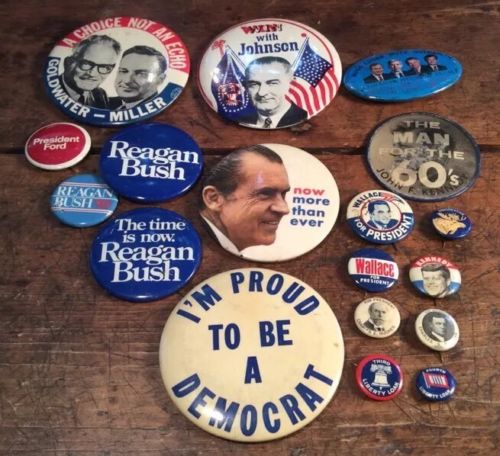 Vintage Political Button / Pin Lot Kennedy, Nixon, Bush, Goldwater,Reagan,Ford