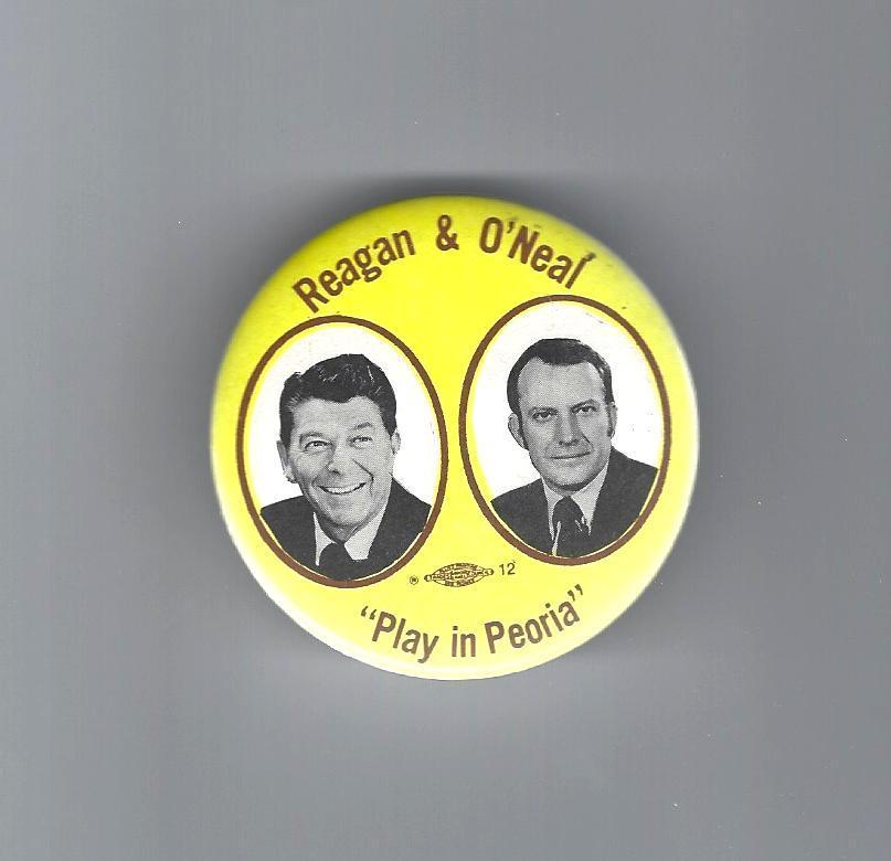 REAGAN & O''NEAL JUGATE COATTAIL PEORIA, ILLINOIS PICTURE CAMPAIGN BUTTON