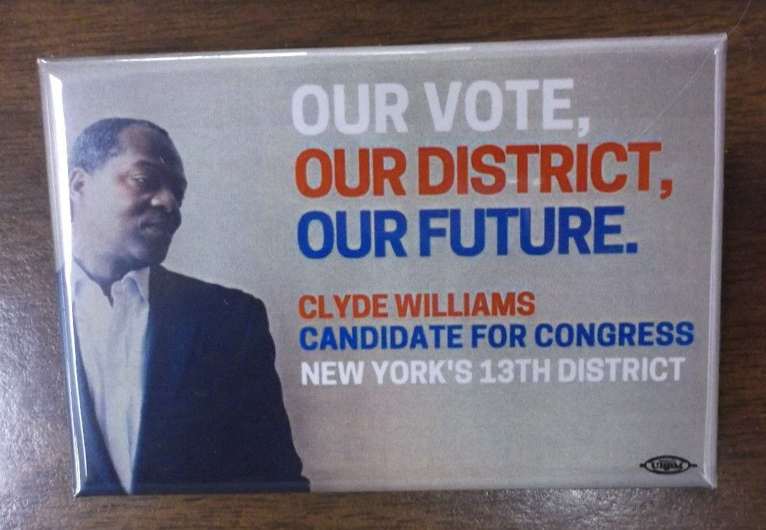 2016 NEW YORK CD-13 Democrat CLYDE WILLIAMS for Congress logo PHOTO Button