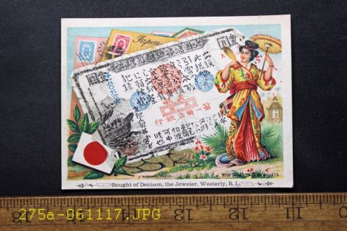 Antique Victorian Trade Card Denison, Jeweler Westerly, R.I. Japanese Currency