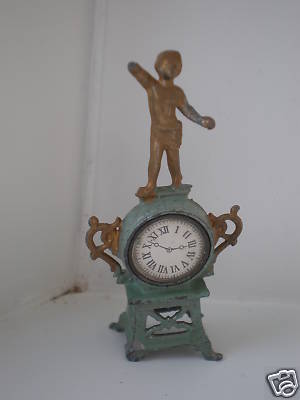 VERY DECORATIVE ANTIQUE SOFT METAL CLOCK WITH FIGURE