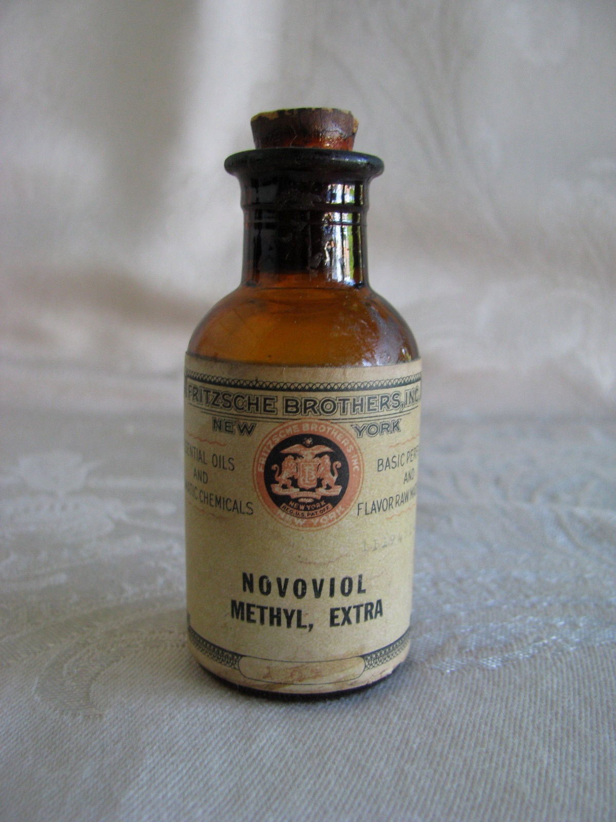 Antique~APOTHECARY~Fritzsche Brothers,Inc~AMBER~Novoviol~Methyl~BOTTLE~Content