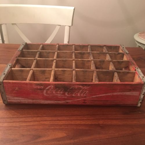 Title (ebay affiliate link): ANTIQUE VINTAGE Wooden RED Coca Cola Coke Bottle Crate Carrier Case 24 Year?