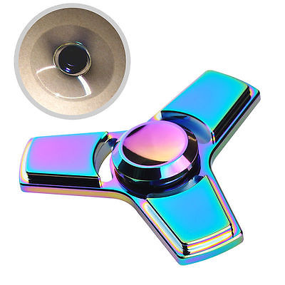 x2Rainbow Color Aluminum Metal EDC Hand Spinner Fidget Finger Fingertip gyro Toy