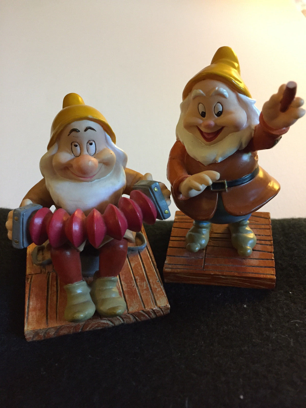 Title (ebay affiliate link): WALT DISNEY SNOW WHITE "SNEEZY" & "HAPPY" DWARF FIGURINE ENESCO 65TH ANNIVERSARY