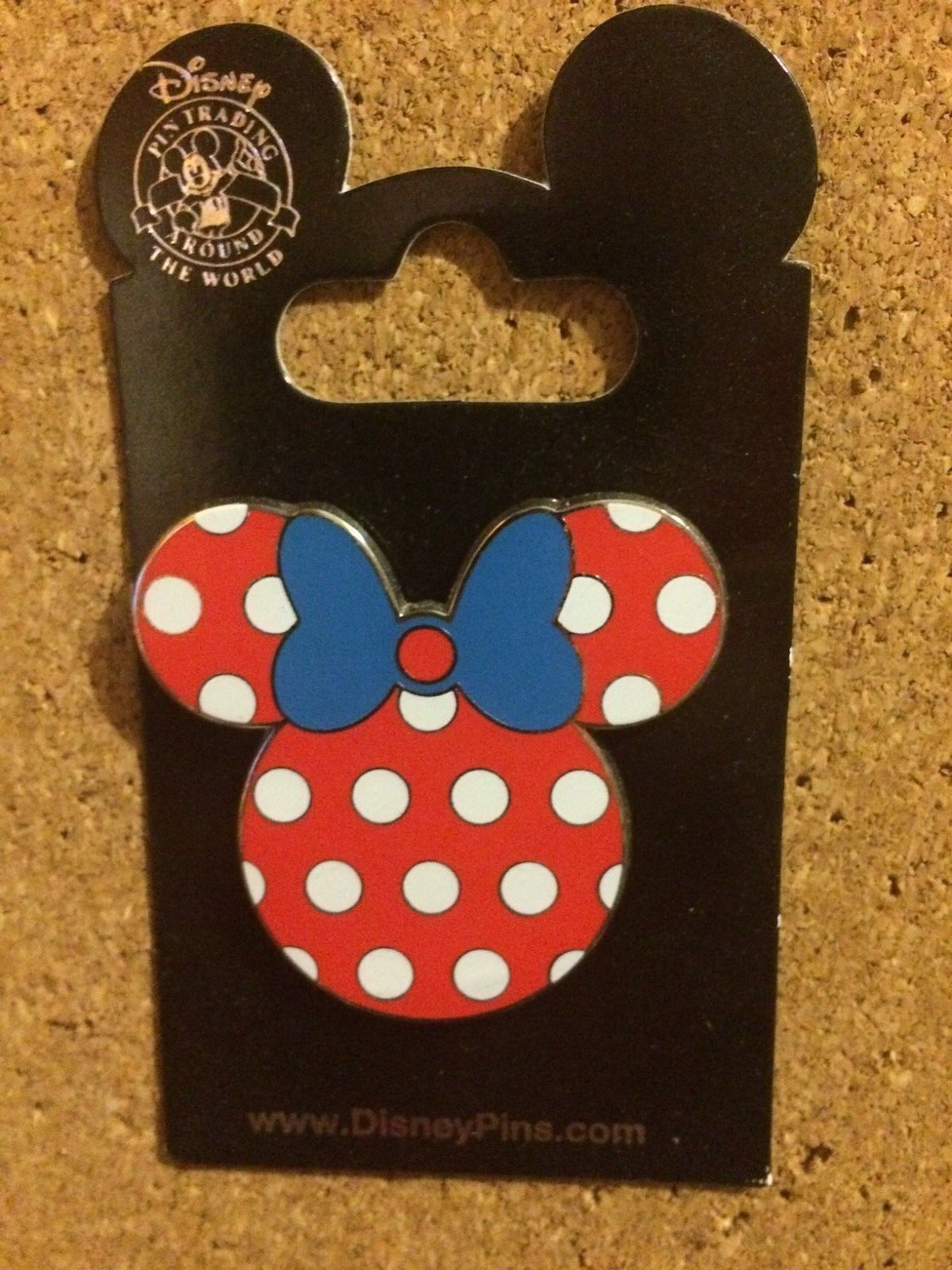 Title (ebay affiliate link): Disney pin Minnie Mouse Head Icon - Red with Blue Bow