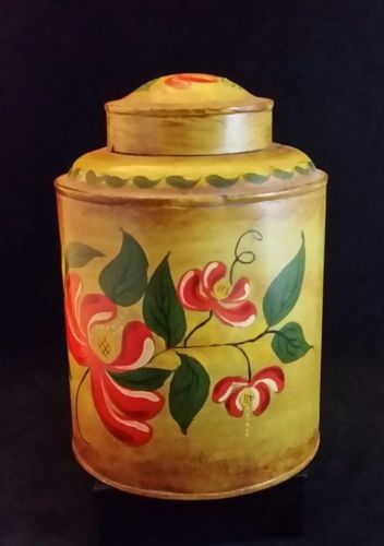 Title (ebay affiliate link): Antique VTG Toleware Tin Tea Caddy Canister Covered Hand Painted 7.5"