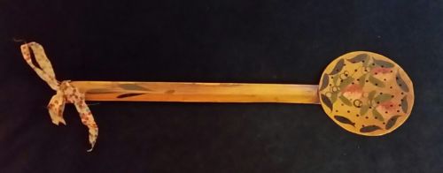 Title (ebay affiliate link): Antique VTG Toleware Tin Ladle Strainer Strawberry Pattern Signed Jean Dewey