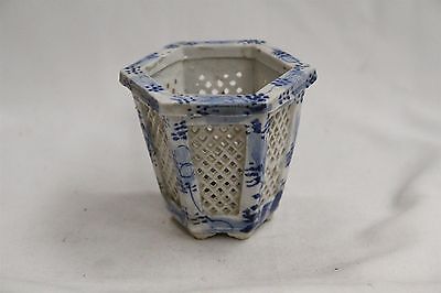 Old Chinese Porcelain Hexagonal Diamond Cutouts Blue white Footed Planter