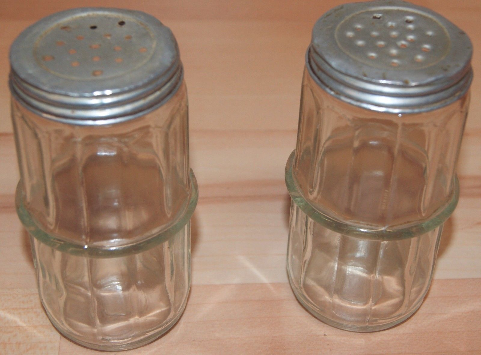 Title (ebay affiliate link): Pair of matching Antique Hoosier Glass Ribbed Spice Jars with lids nice shape