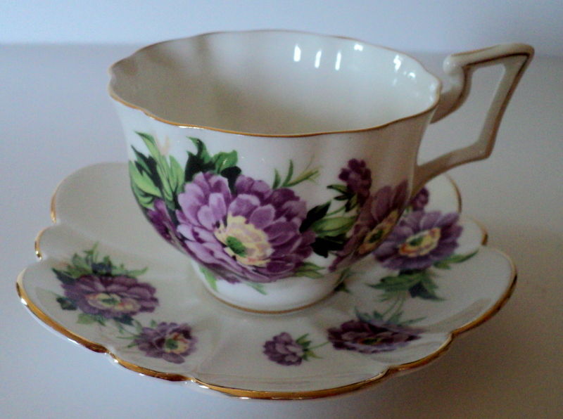 VINTAGE SALISBURY BONE CHINA "EVENTIDE" FOOTED TEACUP & SAUCER