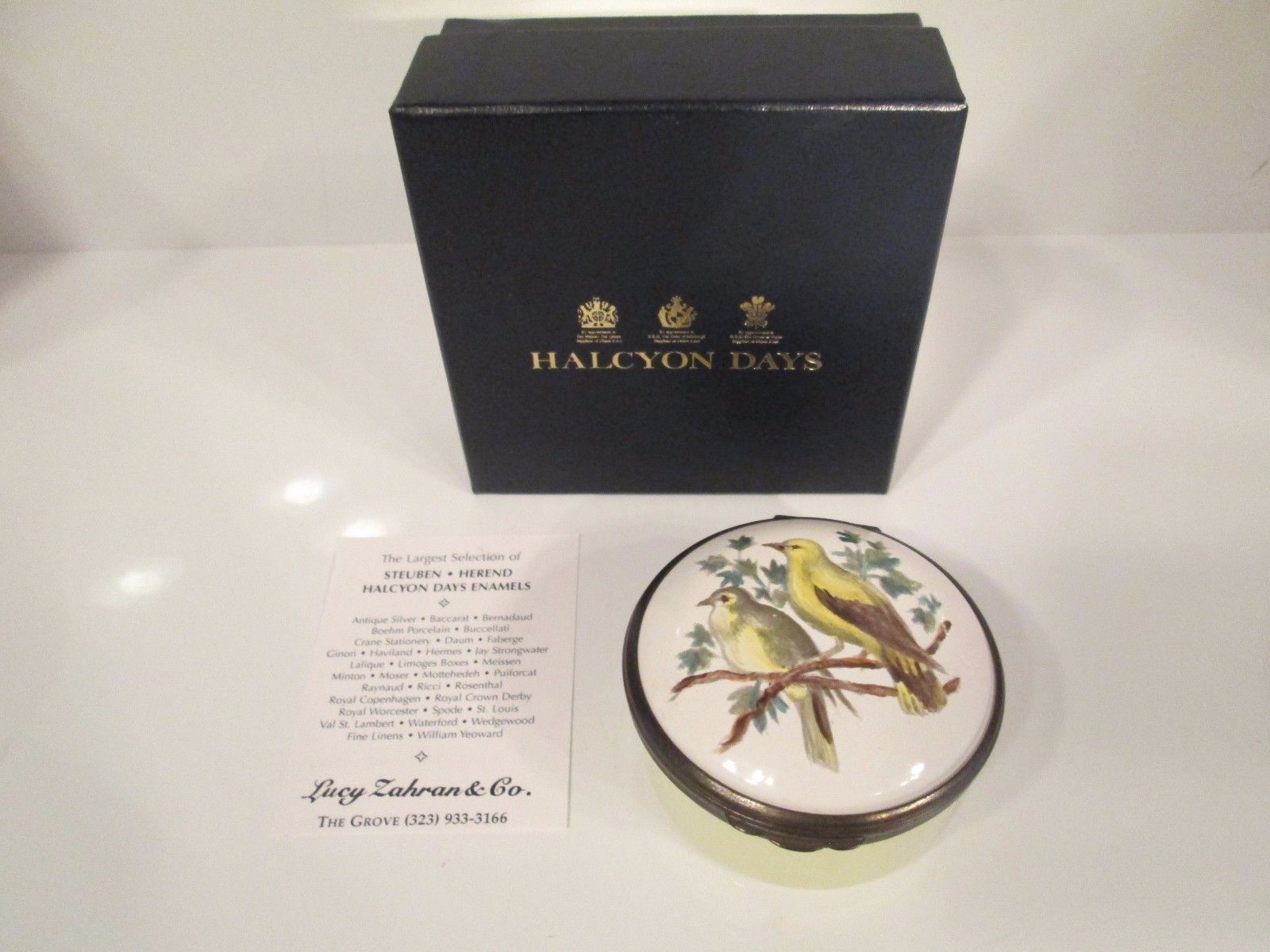 Vintage Bilston & Battersea Enamel Porcelain Box England Birds Halcyon Days BOX