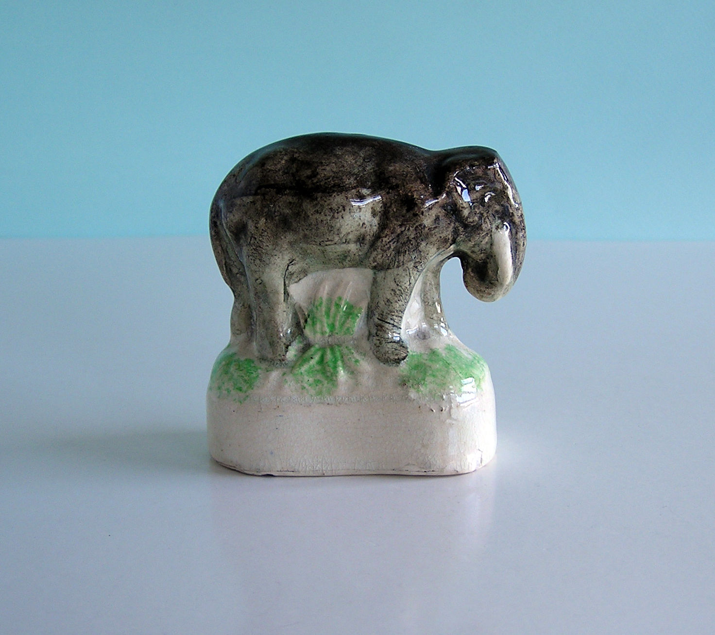Title (ebay affiliate link): Miniature Staffordshire Pottery ~ GREY GLAZE ELEPHANT ~ Green Grass c1850