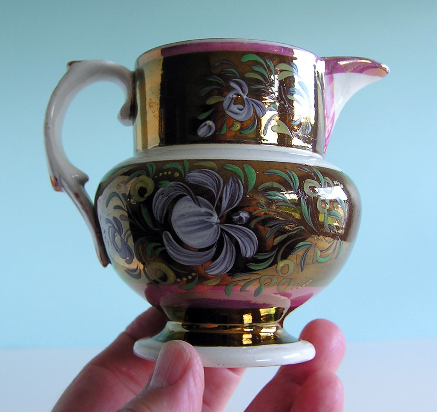 Title (ebay affiliate link): Small Staffordshire Pearlware Copper Pink Lustre Cream Jug ~ QUEENS ROSE ~ c1830