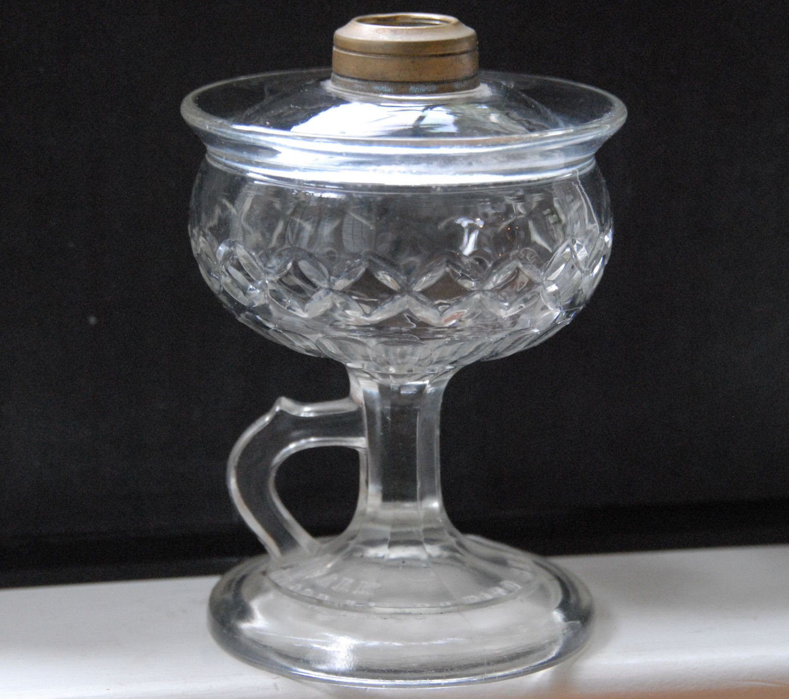 Title (ebay affiliate link): Early Lomax Flint Glass Footed Finger Oil Kerosene Fluid Lamp Patented Rare - 2